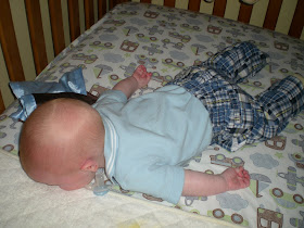 This is how Benjamin looks most days when I go to get him from his nap. I can't wait til he figures out how to roll the other way.
